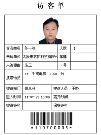 訪客單樣本可自定義表格內(nèi)容,照片也可自定義為證件或現(xiàn)場采集的照片等等!