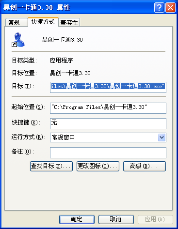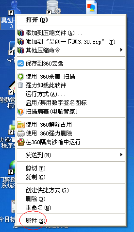 復(fù)制system.at文件,右擊桌面上昊創(chuàng)一卡通圖標(biāo),點(diǎn)擊屬性。如下圖: