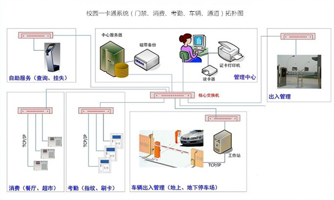 校園一卡通管理系統(tǒng)是以智能卡為電子媒體,集電子工程技術(shù)、計算機軟件工程技術(shù)、微電腦技術(shù)為核心系統(tǒng)于一體的高科技信息工程。它將門禁、人事、考勤、薪資、食堂就餐、保安、停車場管理集于一體,實現(xiàn)全方位“一卡通”智能綜合管理。該系統(tǒng)強化了工廠企業(yè)、辦公室、智能小區(qū)及校園等不同領(lǐng)域的“一卡通”管理理念,為用戶提供高效、安全、便利的現(xiàn)代化管理手段。